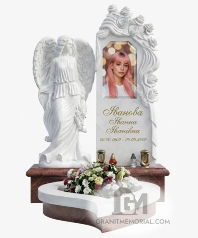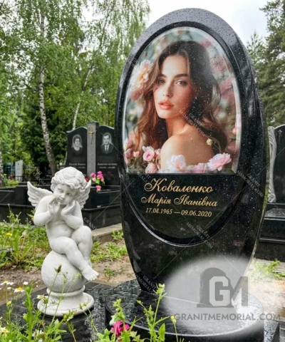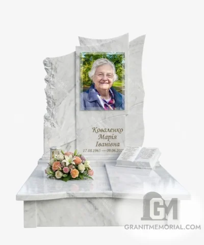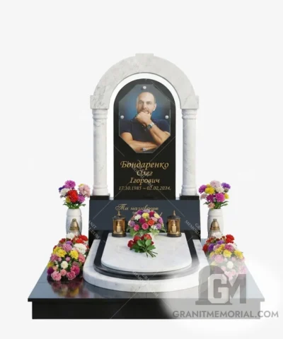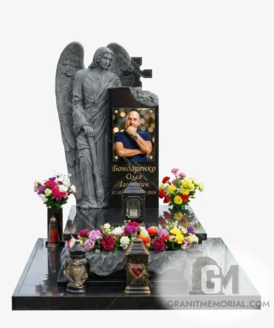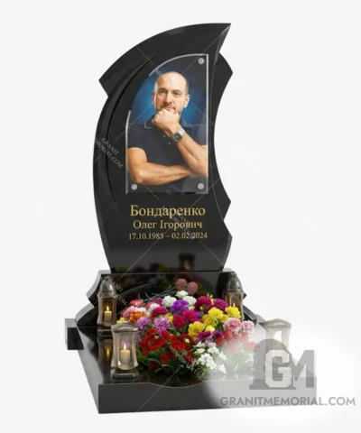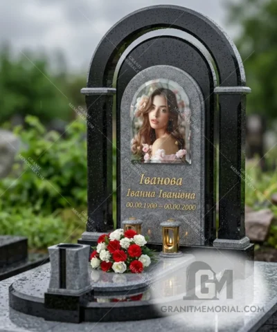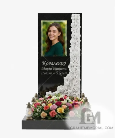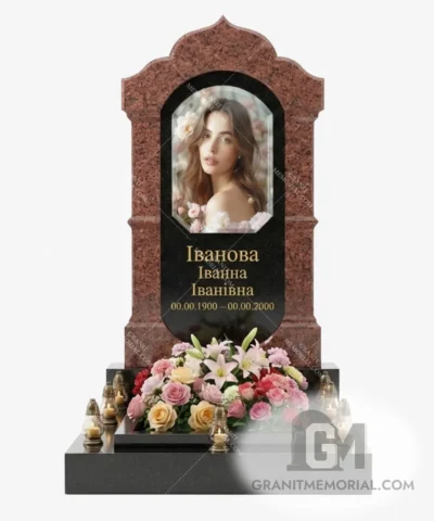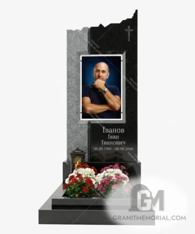 Стоимость начинается от 35 000 грн и зависит от размеров фотостекла, типа гравировки, камня и дополнительных элементов (портрет, герб, цветник).