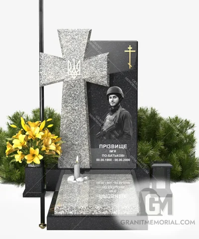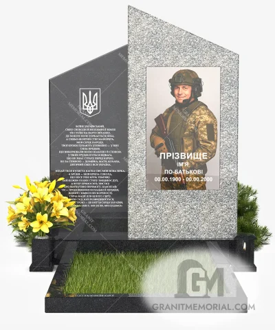 Памятник защитнику Украины. Модель «ЗСУ-003» — торжественный мемориал, выполненный из прочного чёрного гранита с зеркальной полировкой.