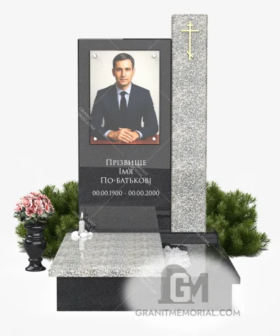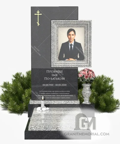 Это одиночный памятник с фотостеклом, идеально подходящий для индивидуальных захоронений. Его строгий и благородный вид подчёркивает уважение к памяти.
